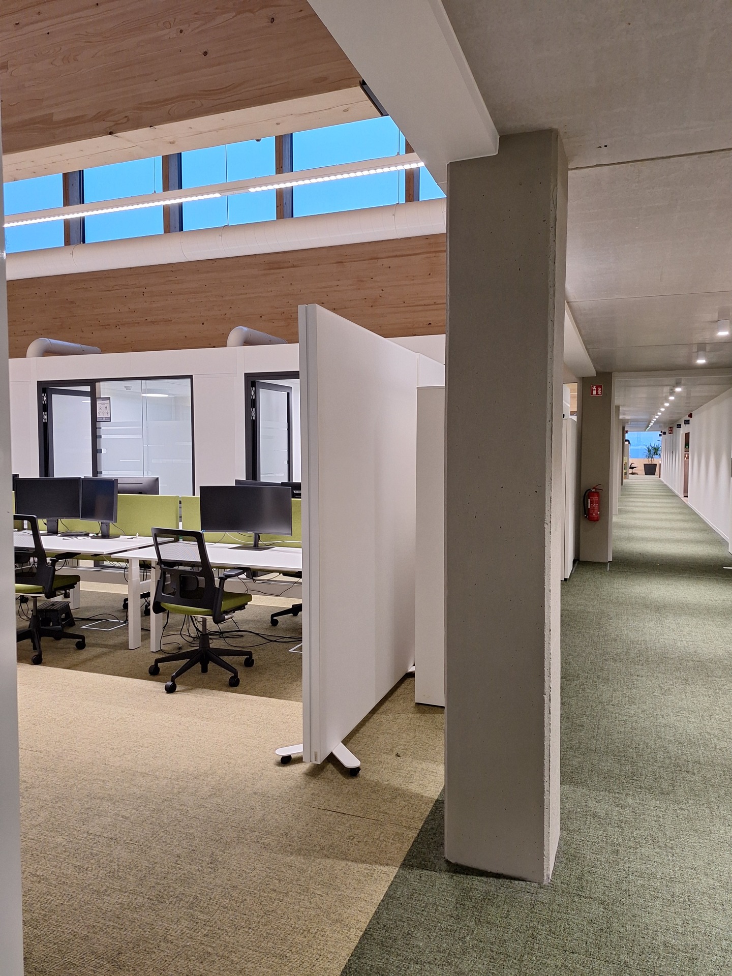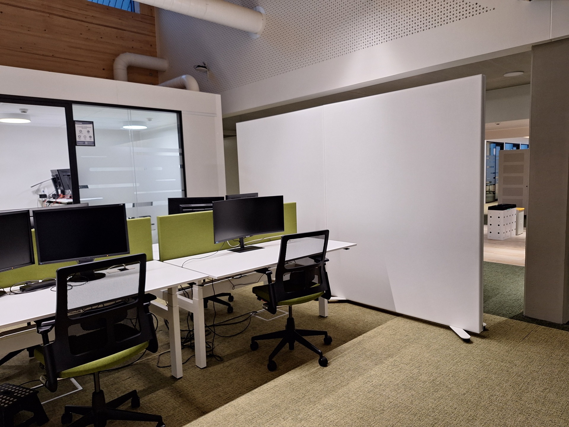 In the contact center, where several office islands are close together and there is a lot of telephone traffic, we installed eight COUSTscreens.