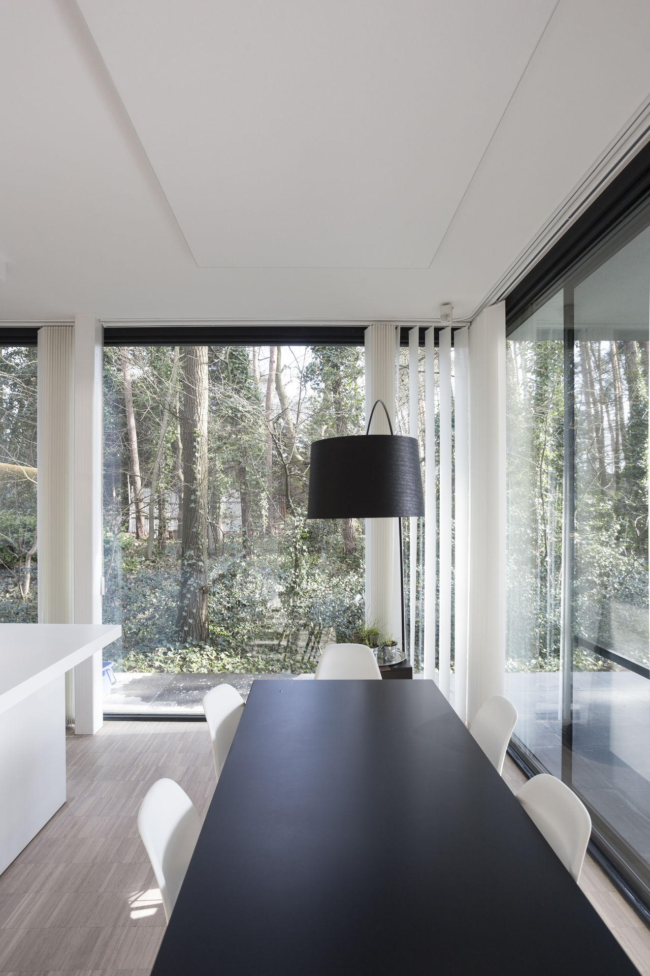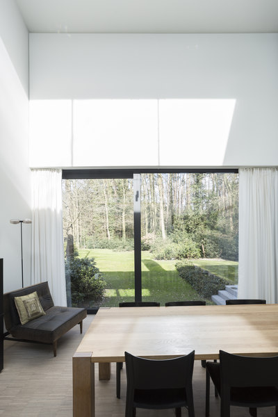 This nice, sleek residence was built in the middle of Rijmenam’s forests. The beautiful environment sparks the imagination, and the occupants wanted to enjoy it to the fullest. They installed some large glass areas that enabled a great amount of light to come in the room and that offered an unobstructed view of the outside. However, these large glass areas disable good acoustics, while enabling lots of sound reflections and thus reverberation. Both the dining area as well as the open kitchen were in need of an acoustic solution. COUST to the rescue!